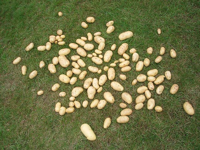 After a brief catch up in office, I got the lawns raked and mowed, although it is clear that they will need a further treatment. This meant that I had a nice clear back lawn for spud drying after the next batch of potato harvesting. I harvested all of the weaker looking Charlottes, which are still averaging just over 2lbs per plant.