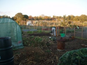 The photo below shows the sun setting on an autumnal plot. There are large piles of things to be burned as I don’t want to compost things like the cucurbits which finished the year with mildew, the fungus would not be killed by a domestic compost heap.