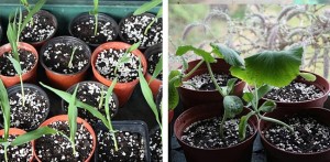 This approach doesn’t work for everything. Carrots and parsnips don’t like it. Some books say that sweetcorn don’t like having their roots disturbed either, but our experience has been that this was no problem provided that the seedlings were handled with great care (they are rather less robust than they look and have a tendency to break).