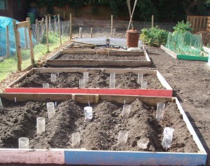 Hosepipes have always been banned for watering, although they could be used for filling containers including water butts.  Now they are completely banned meaning that all water from the taps has to be carried to plots.  In my opinion that is not a bad thing in terms of targeting watering, although it could be hard work for some of the less physically able plot holders.  The reason that I think that limited access to water could be a good thing is that when water is easy to apply we end up putting a lot on the surface of soil that will evaporate quickly in warm weather and can cause the surface structure to break down leaving a surface cap that prevents subsequent rain from draining down to the root area where it is actually needed.