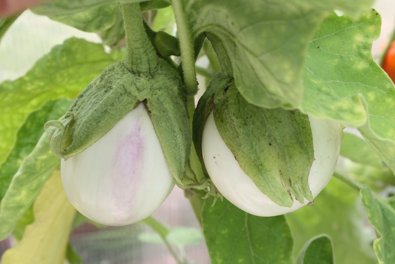 The pale aubergines below are Rosa Bianca.  As well as looking very attractive on the plant, they cook well and are definitely a cultivar worth trying.