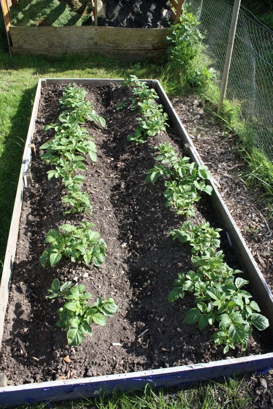 Elsewhere on the plot, the peas and beans also went out today and the early spuds are developing nicely.