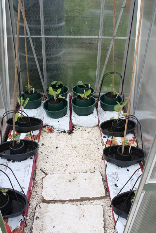 A marker in the allotment year is the day that we get the greenhouse planted up.  As it is unheated, we always need to be careful to make sure that any risk of a late frost has passed.  This waiting is balanced against the fact that the plants are starting to outgrow the hardening off and window space at home.  Mind you they look a lot smaller once they are planted out.
