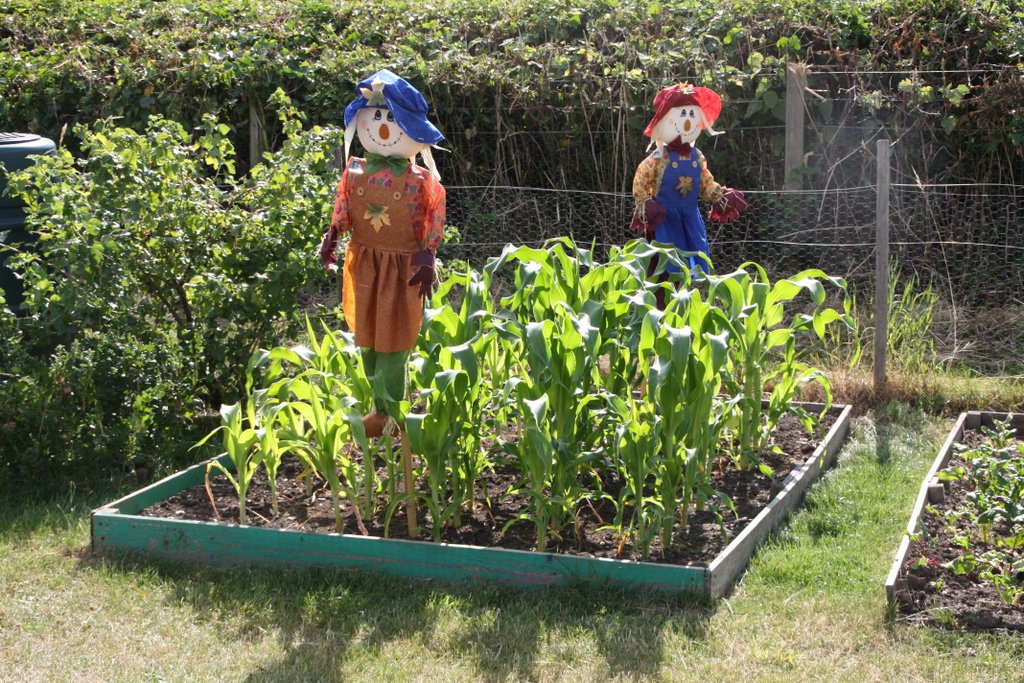 Father Christmas (in the person of Mark’s sister Laura) gave us some scarecrows last December. They have stayed indoors during the worst of the weather, but have come out to play now that summer is here. They are guarding our sweetcorn.