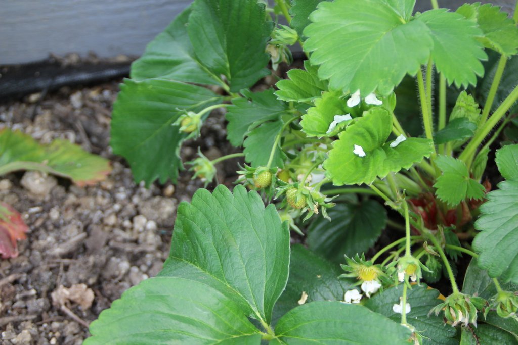 - If you’re growing strawberries, then a high potassium feed (such as tomato feed), given every week or so will help to boost flowering and fruiting. Because of the late frosts in April, you may see signs of “Black Eye”. This is not a serious problem, but means that the flower has been damaged by frost and the fruit will not set. You can remove any affected flowers.