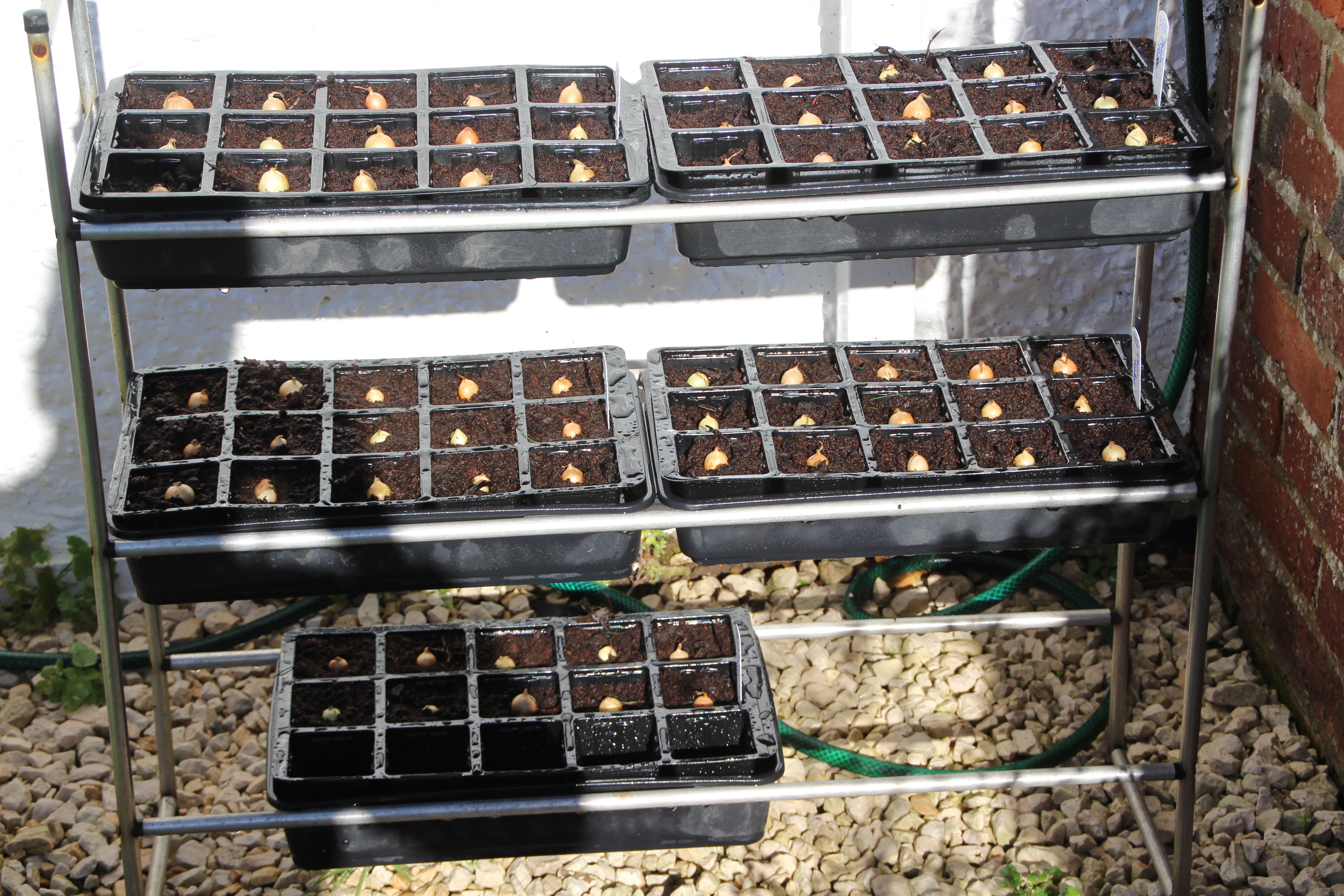 In the kitchen garden you can get overwintering onion sets and garlic on the way. We tend to start onions in cells and then transplant the young plants once they have developed a good root system.