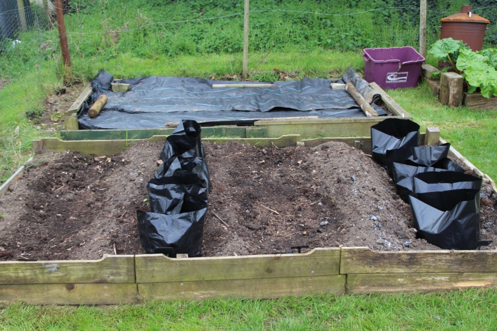 this year we are trialling growing potatoes in open ground and in bags next to each other in the same bed.