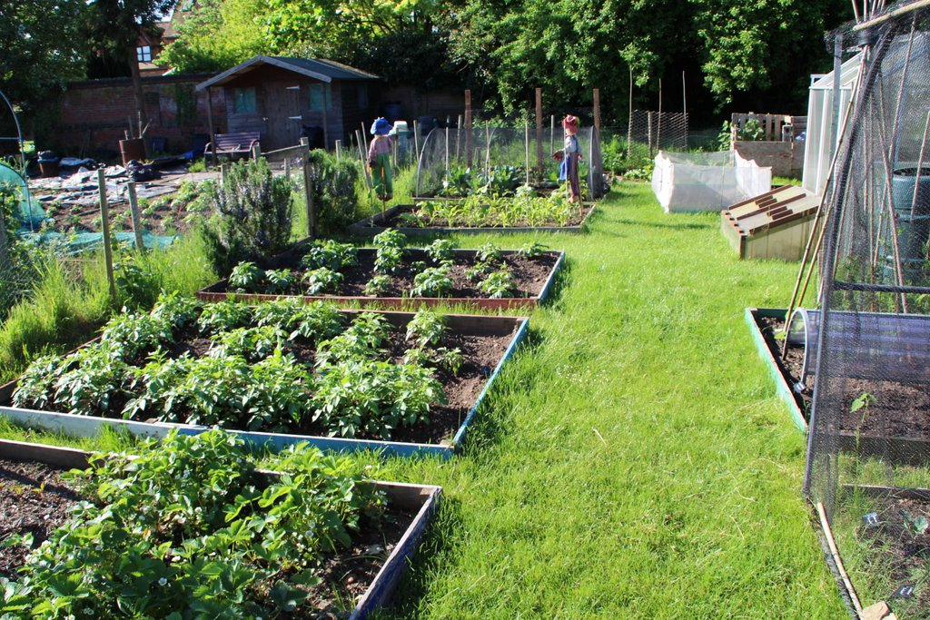 Spring has definitely arrived in the allotment.  With the longest day less than a month away and the sun high in the sky we are really getting some warmth into the ground and the plants are taking off.  As the picture below shows, the spuds are now growing quickly and we’ve pretty much finished earthing them up and we’ve decided that it is finally warm enough to get the sweetcorn out.