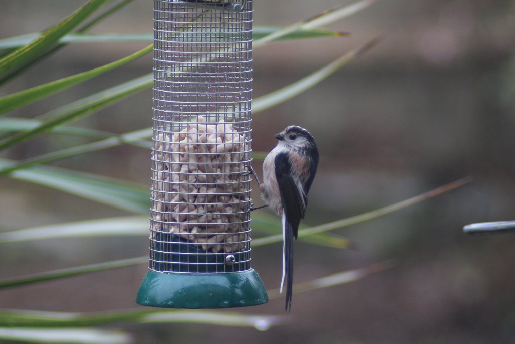 Another bird that has been visiting in some numbers is the long-tailed tit.  We tend to get little flocks of them sweeping through the garden, but this one stayed long enough to strike a pose for us.