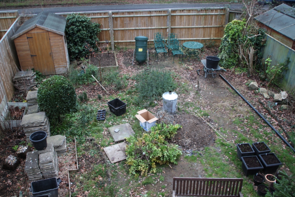 The downside of extending the house is that both the front and back gardens have shrunk and as they have been builders’ yards for over six months they are no great advert for our skills.  we have therefore decided that it is time to strip the gardens back and start again and we’ll keep you posted on progress over the next few months.  The back garden used to be a pretty standard small plot. Some lawn, some shrubs and given our interests some fruit and vegetable beds.