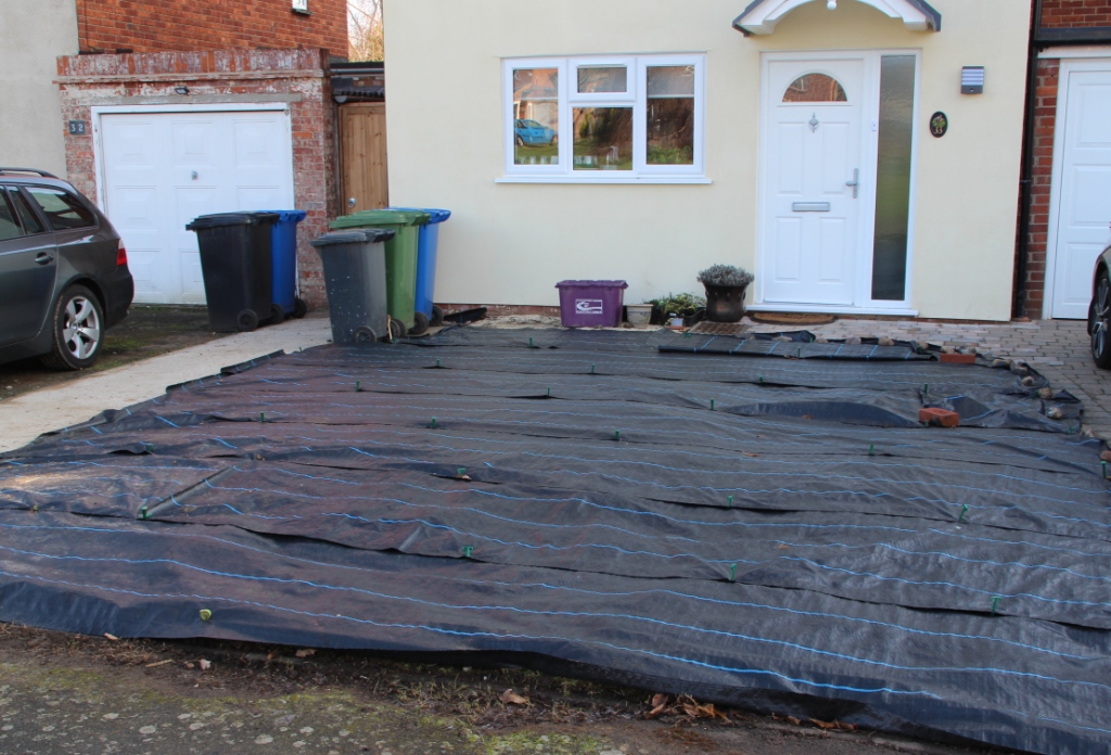 The garden has now been completely cleared and at least the weed suppressant membrane looks neat!  The pots of herbs against the wall give away what will be in a new bed under the kitchen window.  that aside we’re still in the planning phase.