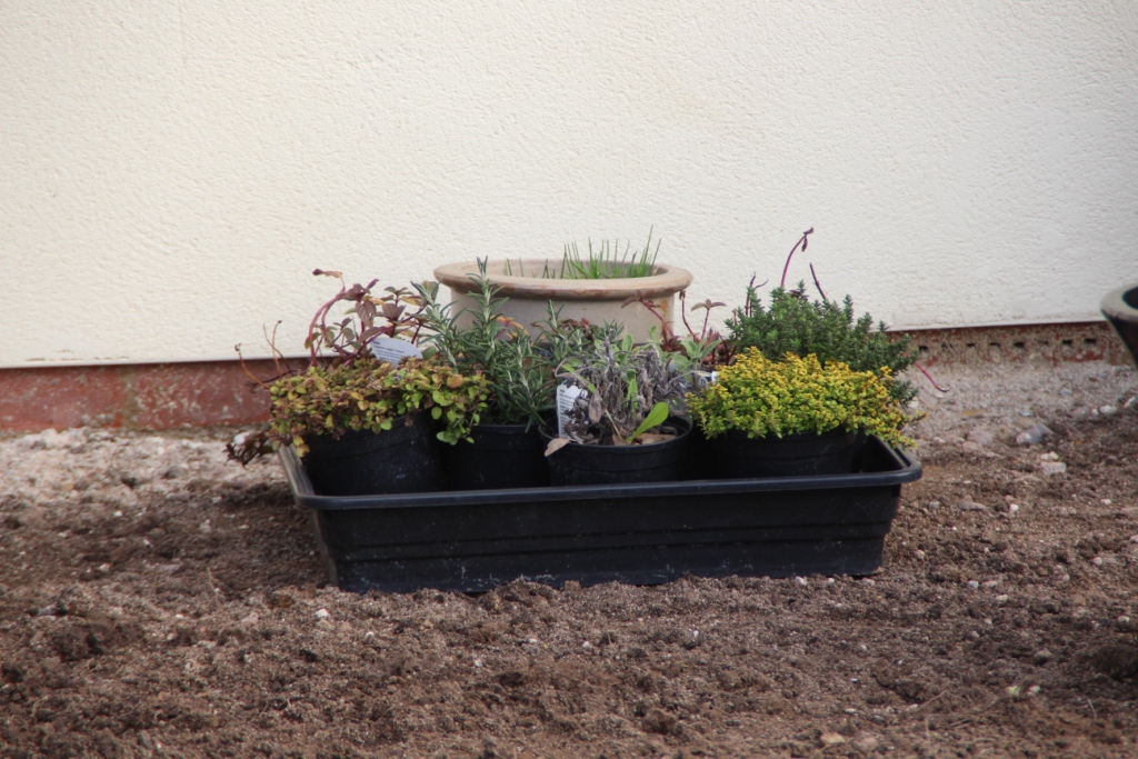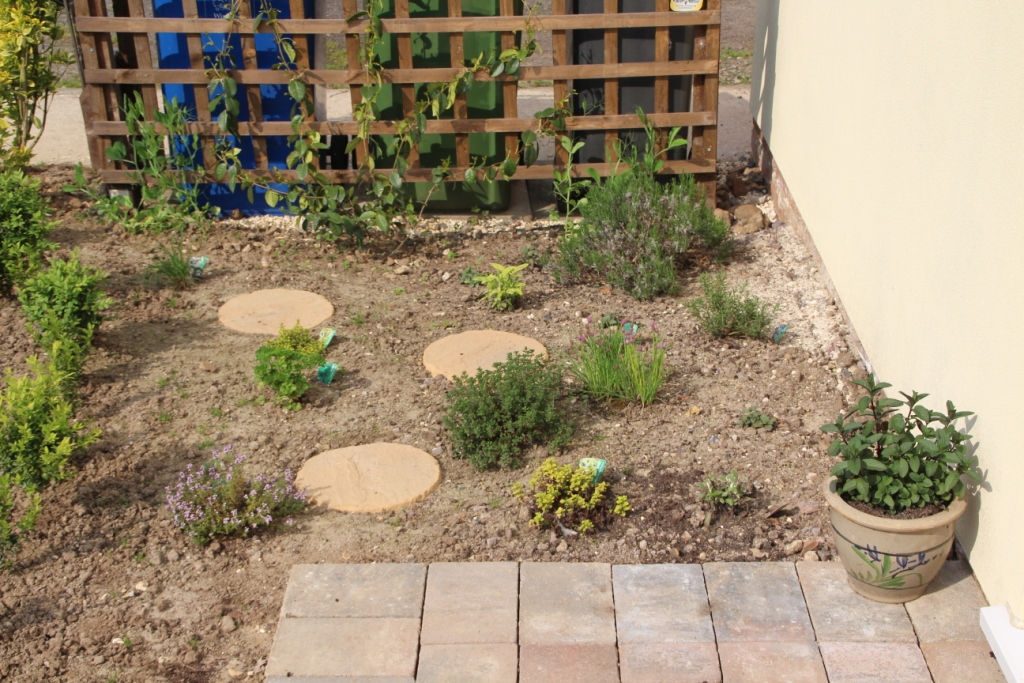 The anti-cat fence is still up at the moment, but once that comes down we will be able to crack on with planting up the herb bed.