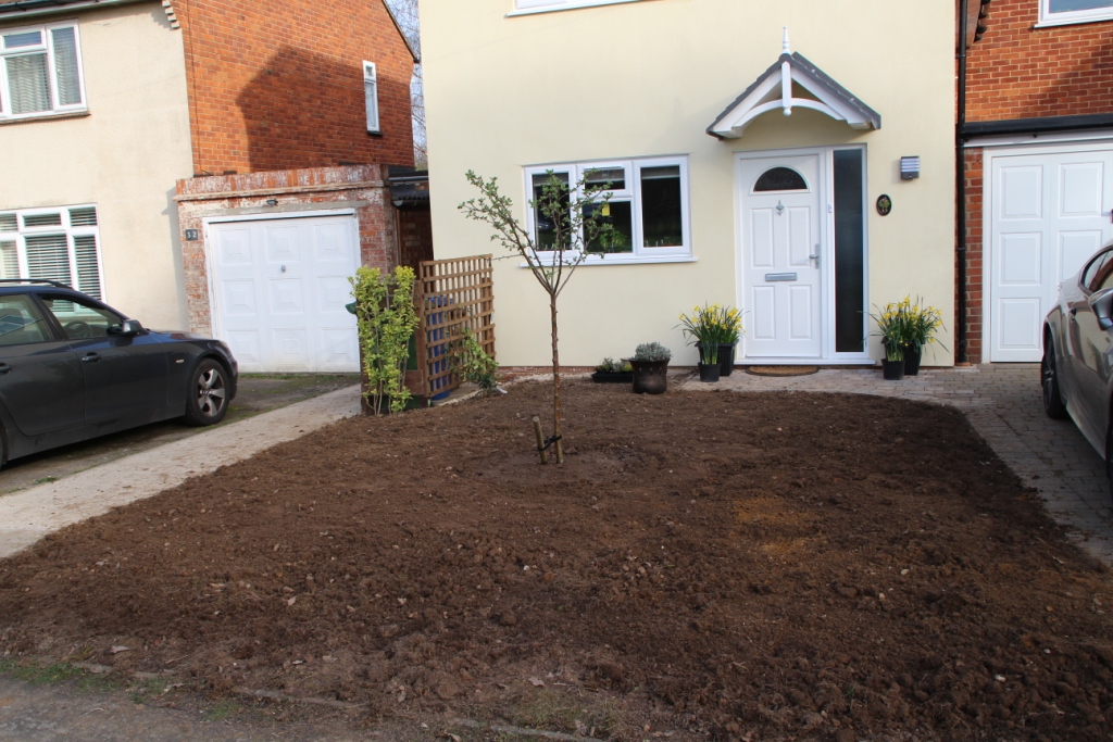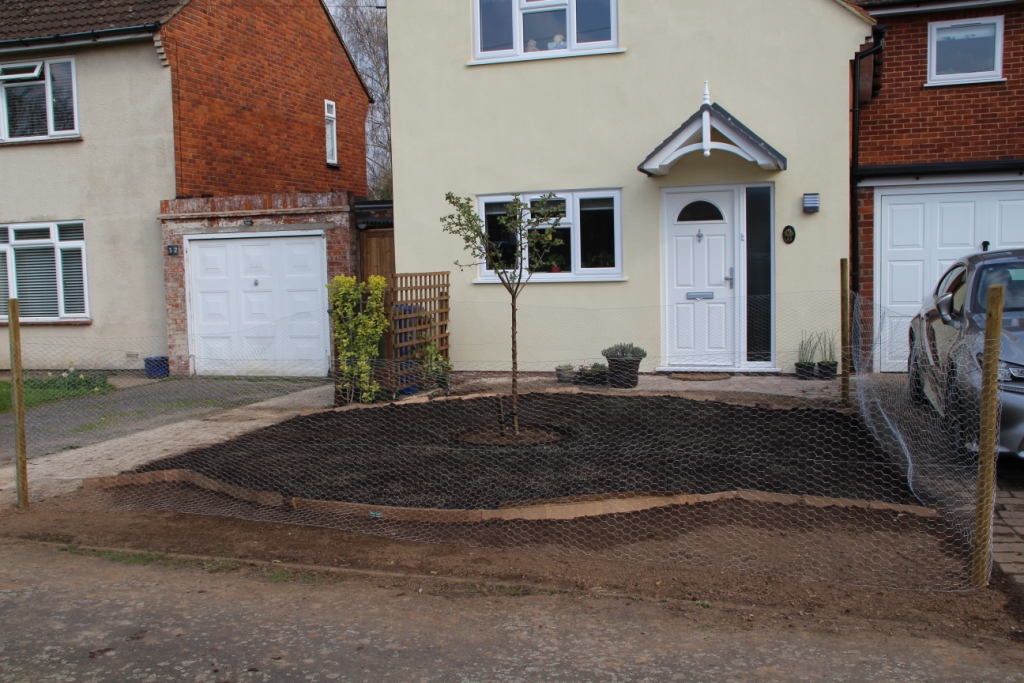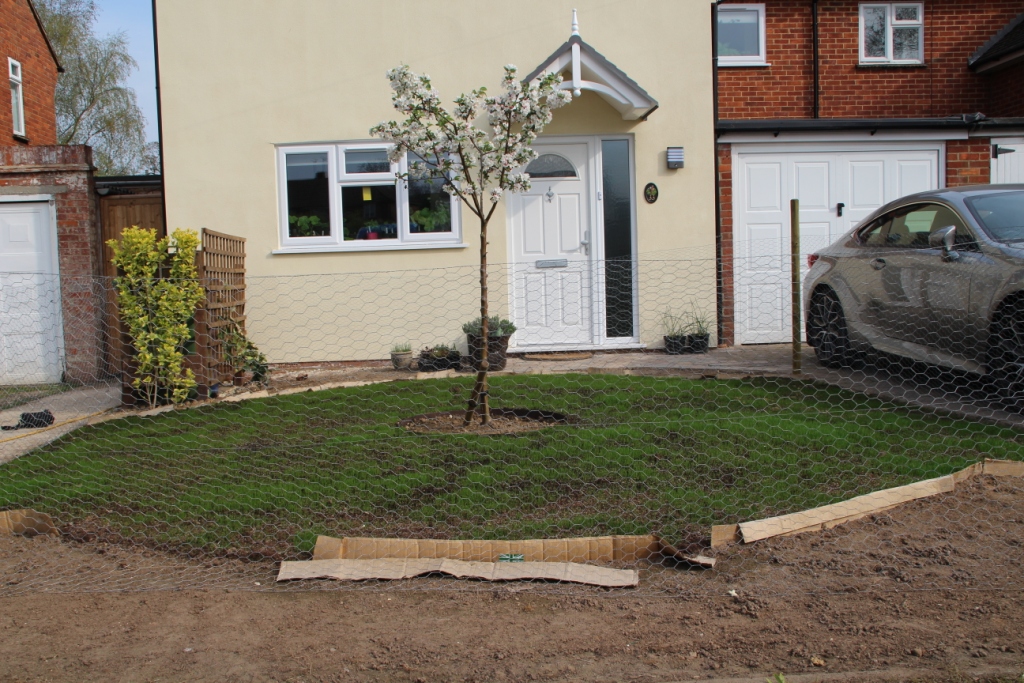 We have decided to use a crab apple rescued from the back garden as a central feature of the front garden and got this planted last week.