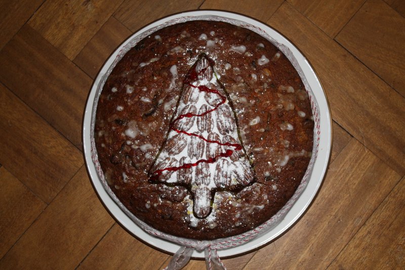 With a few spare carrots floating around we thought about using some of them to make a carrot-based version of a Christmas cake. Lynn found a recipe on the internet, and after a brief shopping trip headed for the kitchen with the following result.