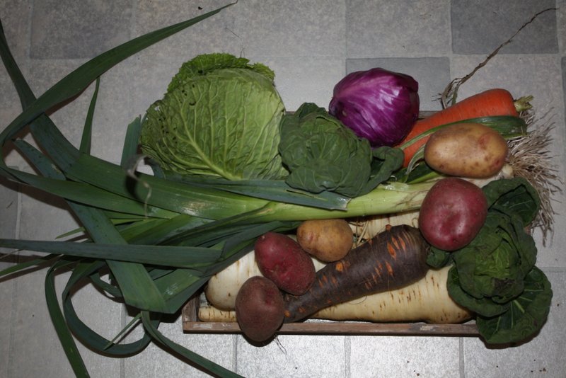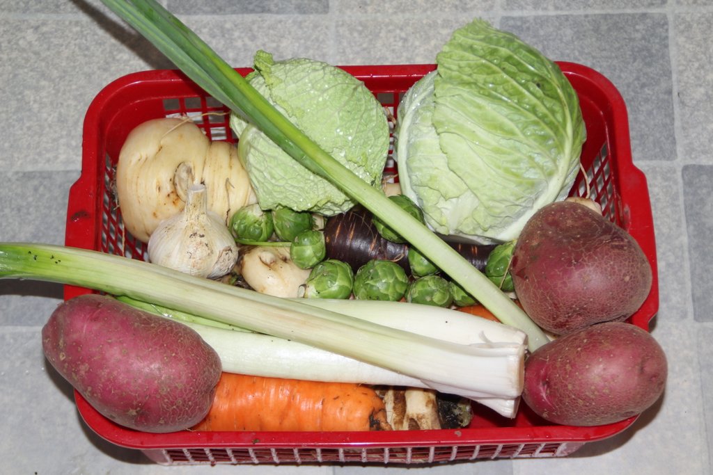 Ever since we first started growing vegetables in a few small raised beds in the garden having our own stuff for Christmas dinner has been a major aim.  Nowadays with the allotments this is fairly straightforward, but this morning’s harvesting trip along with a trip to the garage to get some spuds out of storage means that we are well set for tomorrow.