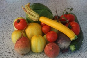 The photos below show how the plot was looking a couple of weeks ago and some of yesterday’s harvest.